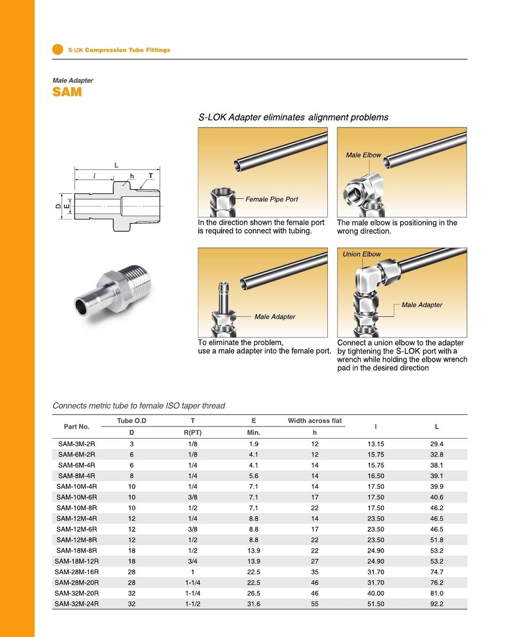 양단타입 : 튜브 아답타 - 수나사 NPT Pipe Thread 재질 : 316 Stainless Steel (S6) |