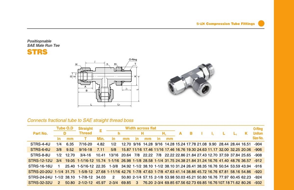 STRS 시리즈 포지셔너블 SAE 메일 런티 / inch 튜브 - 수나사 SEA 타입