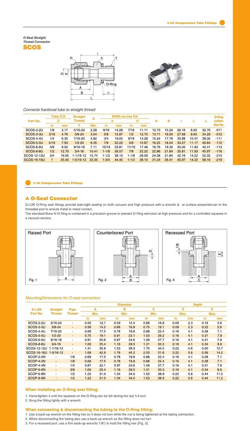SCOS 시리즈 O링 씰 커넥터 / inch 튜브 - 수나사 SEA 타입