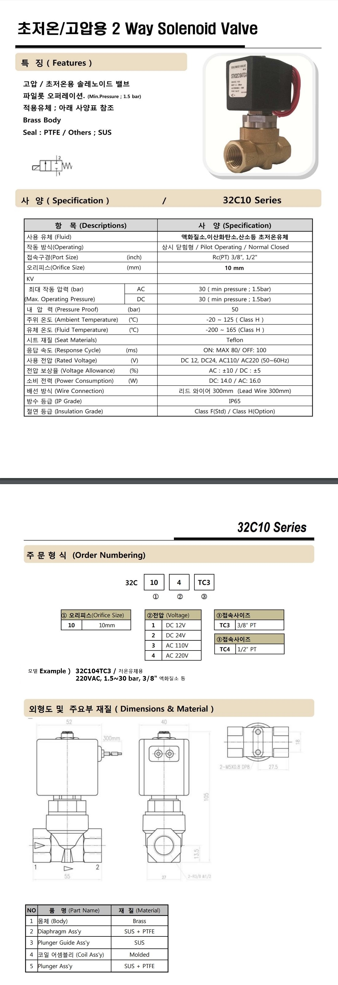 PT(Rc) 3/8(10A) 1/2(15A) 황동 Body / -196도 저온 유체, max 30 bar