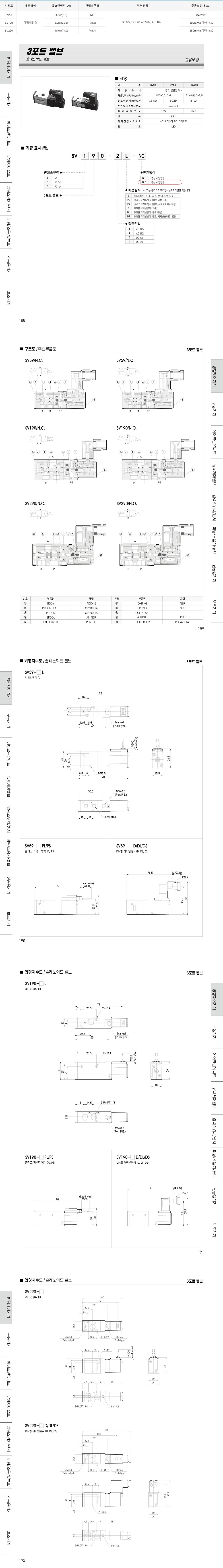 SV59 SV190 SV290 시리즈 상시열림 3포트 솔레노이드 밸브 / 파일럿형 N.O
