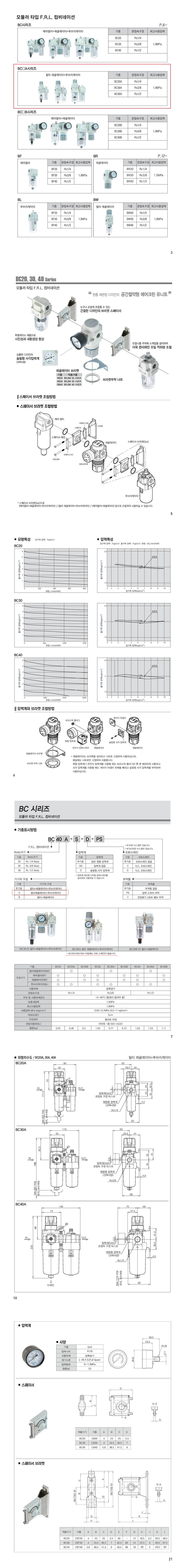 BC-A 시리즈 FR+L 컴비네이션 / Rc(PT) 1/4~1/2 , 0.5~7 Kgf/cm2