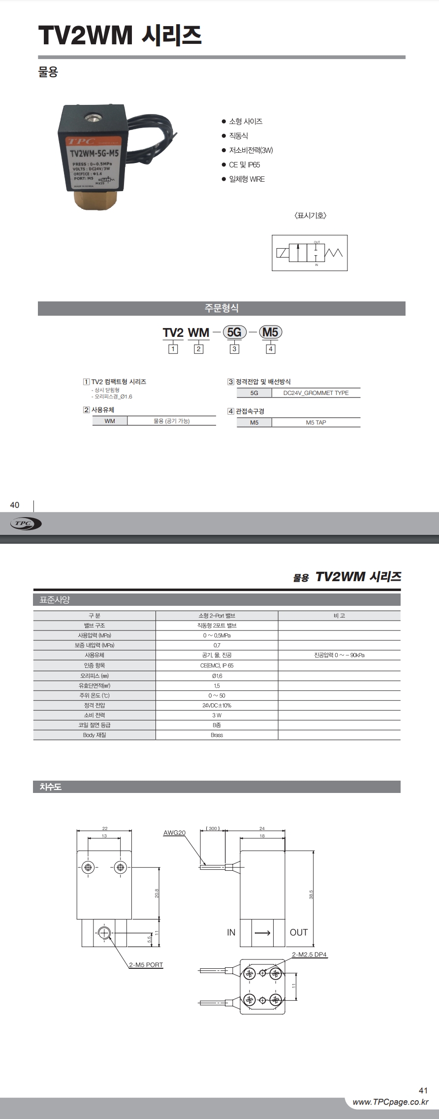 TV2W 시리즈 2포트 직동 소형 max 10 bar 1/8(6A), 1/4(8A)
