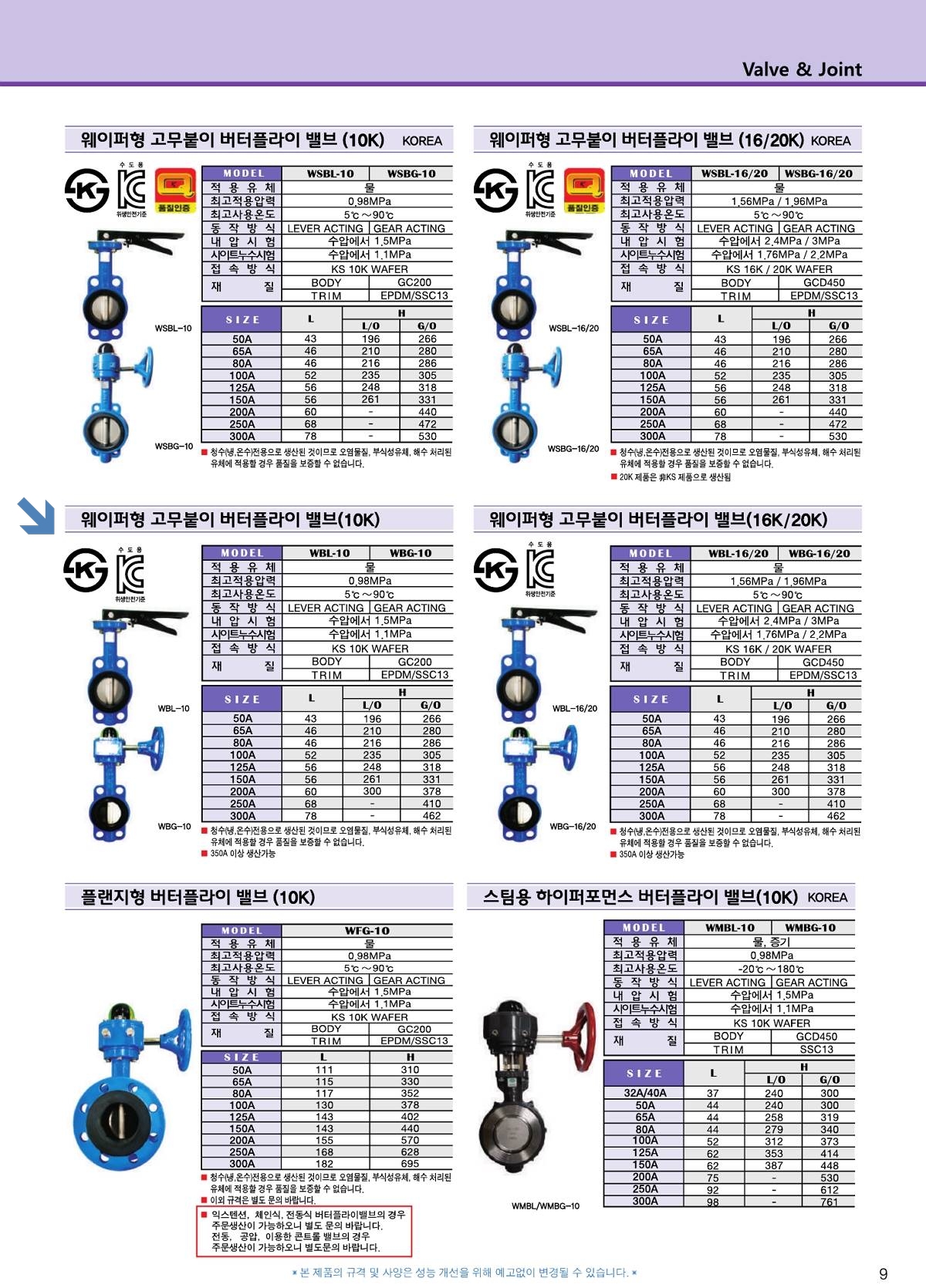 | 체크포인트 | 냉온수 청수용으로 오염물질, 부식성유체, 해수 처리된 유체 적용 경우 품질보증이 어렵습니다. 주문생산 별도 문의 - 16K 20K - 익스텐션, 체인식, 전동식 버터플라이밸브 - 전동, 전자, 공압, 유압 이용 컨트롤밸브 - 품질인증(Q-Mark) 인증제품 |