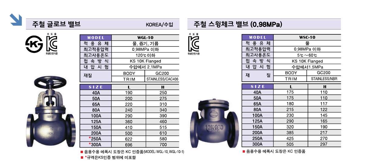 | 체크포인트 | 음용수용 에폭시 도장은 KC 인증품 모델 WGL-10, WGL-10-1 KS 인증 범위 미포함 제품은 상세페이지 참조 부탁드립니다. |