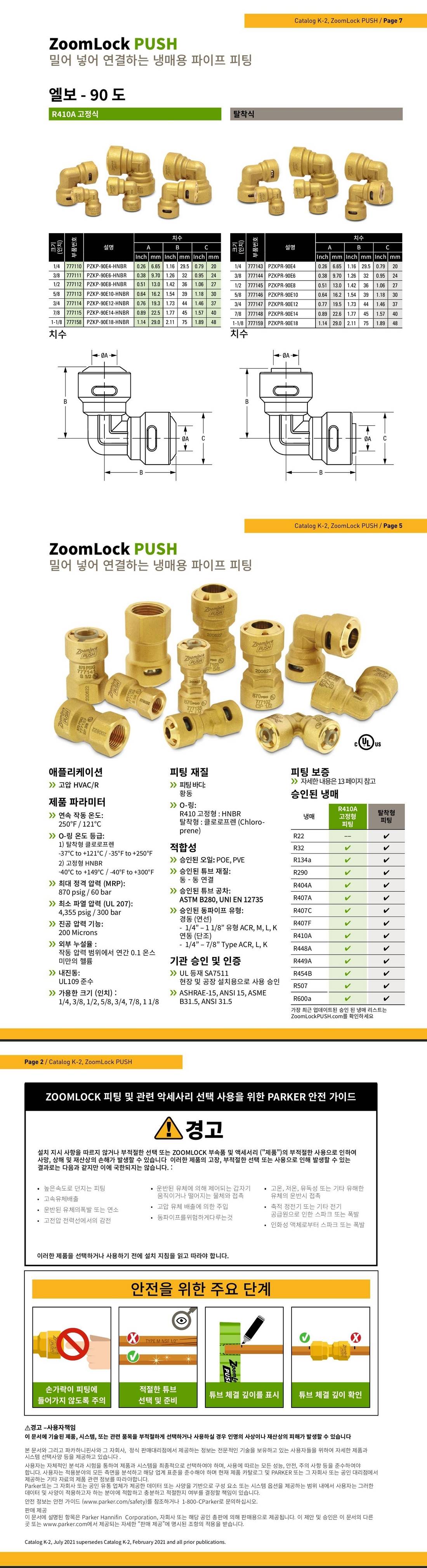 줌락 피팅 사이즈는 ACR용 (HVAC/R 고압용) 동관 사이즈 기준으로 참고 선정 바랍니다.